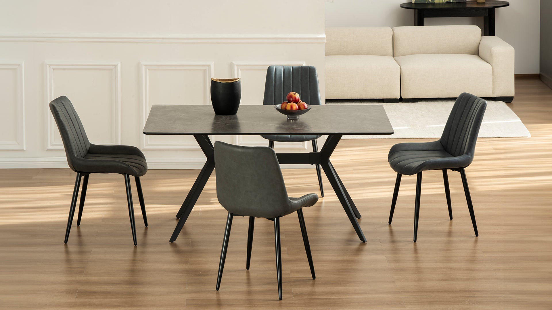 Las sillas Jarvis presentan un diseño atemporal, tapizadas en cuero de primera calidad para una apariencia lujosa. Con un acolchado de esponja de felpa, garantizan una comodidad excepcional durante cada comida. Su estilo versátil complementa a la perfección la mesa de comedor, lo que las convierte en una opción perfecta para cualquier tema de diseño de interiores.