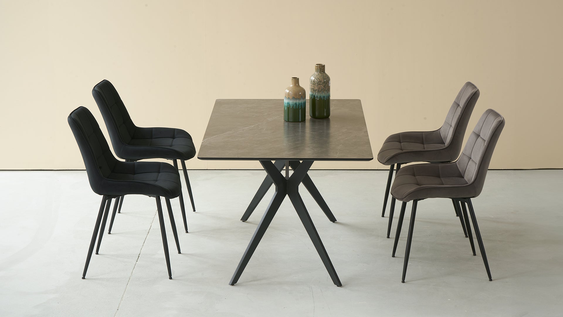 Combina Laila con tus sillas favoritas de OFCASA - desde las de lino beige y sillones bouclé hasta taburetes de cuero sintético - para crear un juego de comedor "mesa y 4 sillas" que se adapte a cualquier estilo, desde el minimalismo escandinavo hasta los lofts industriales.