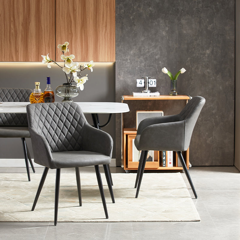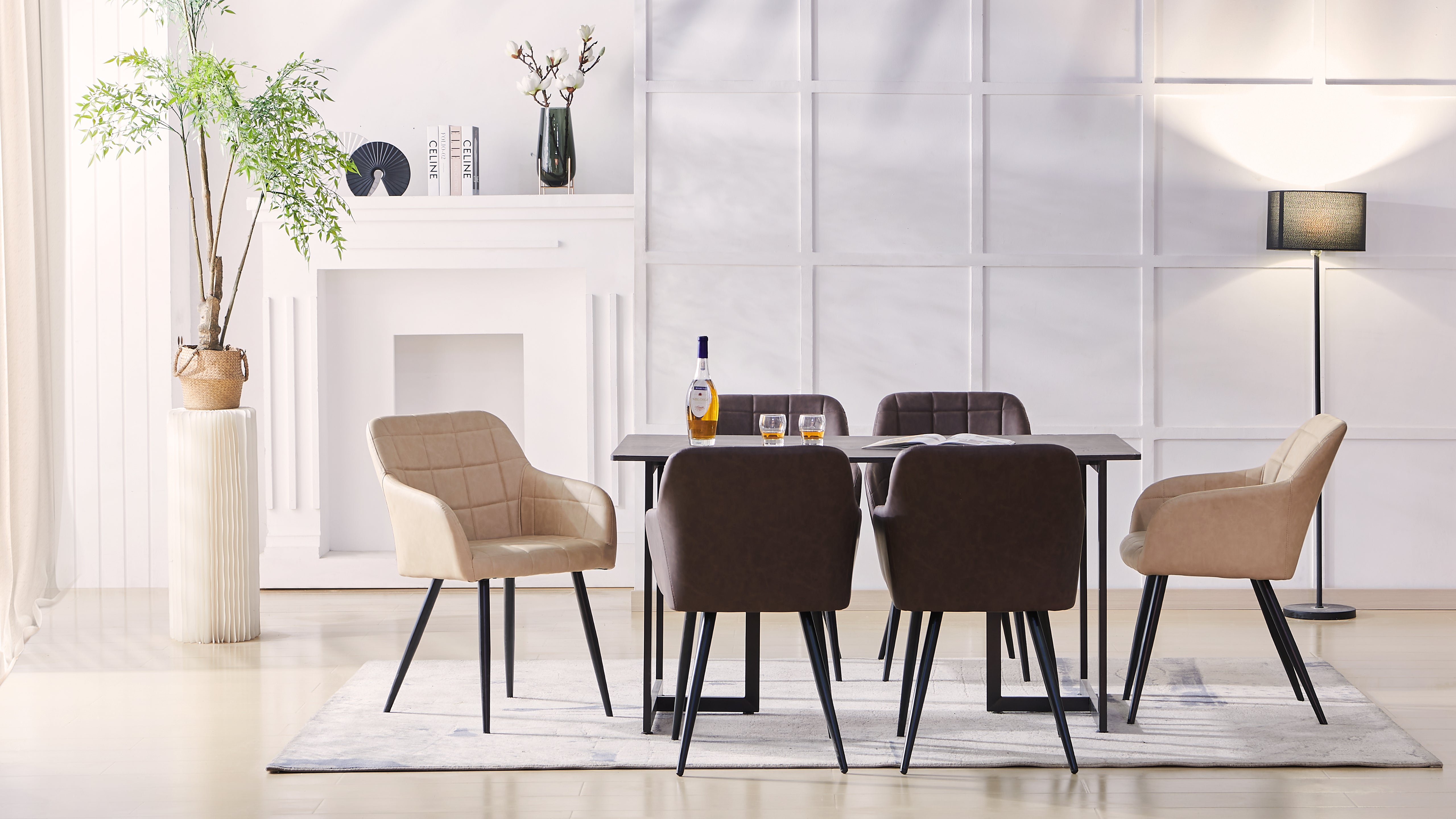 【Ajuste cómodo】El amplio respaldo de la silla de comedor y el grueso cojín acolchado del asiento proporcionan un soporte suave para la espalda y las caderas cuando se está sentado durante largos períodos de tiempo, mientras que los reposabrazos se suman a la comodidad general de la silla para que pueda relajarse durante un día ajetreado.
