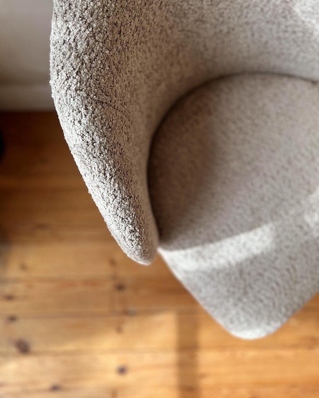 "I chose the muted mushroom / beige colour from the gorgeous Yasin range which works so well with the limewash walls, plus the bouclé fabric & curved design nods to my usual mid-century vintage style."